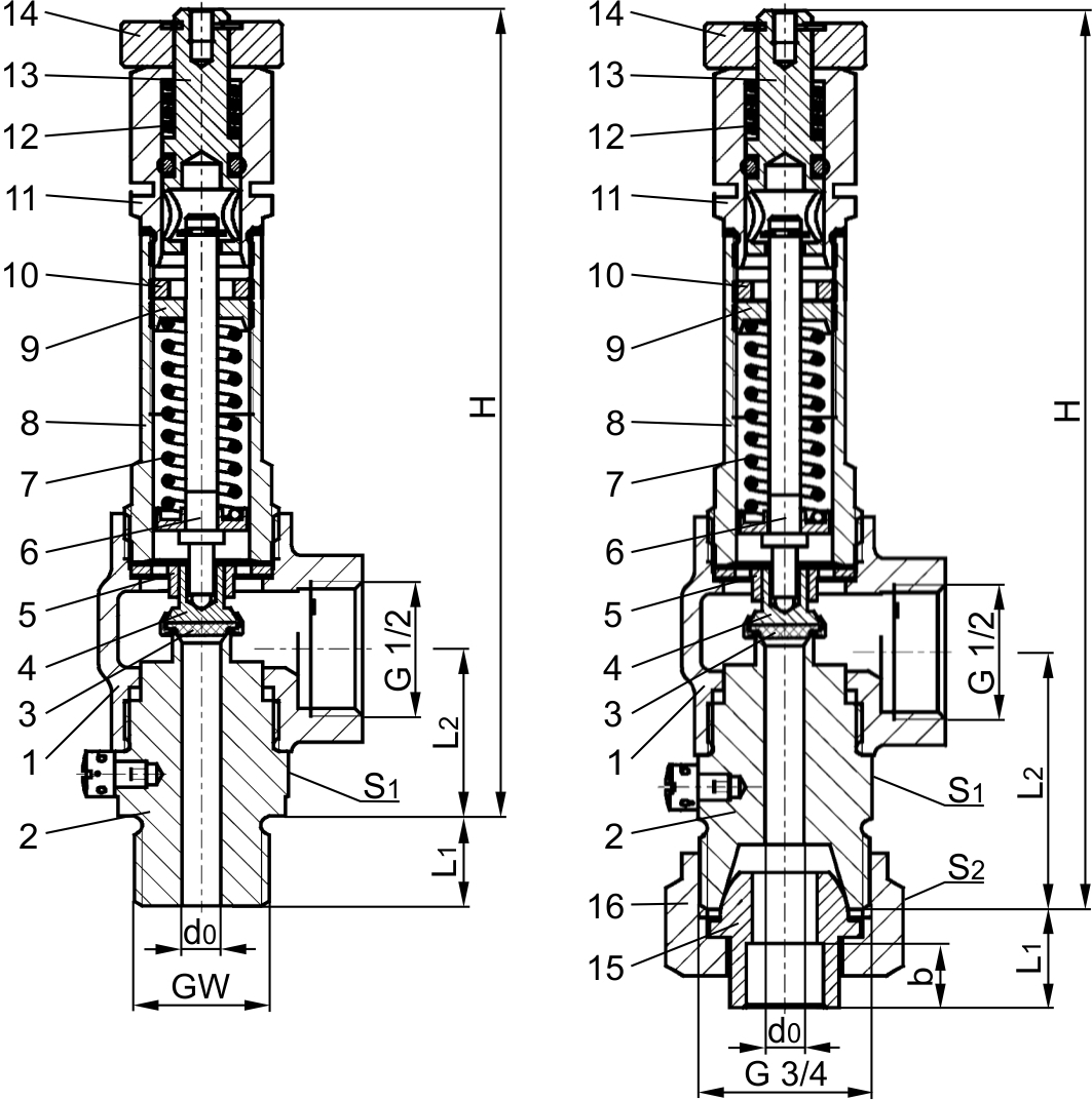 Zulässige Betriebstemperatur: -196°C (77K) bis +150°C (423K), geeignet für waagerechten Einbau